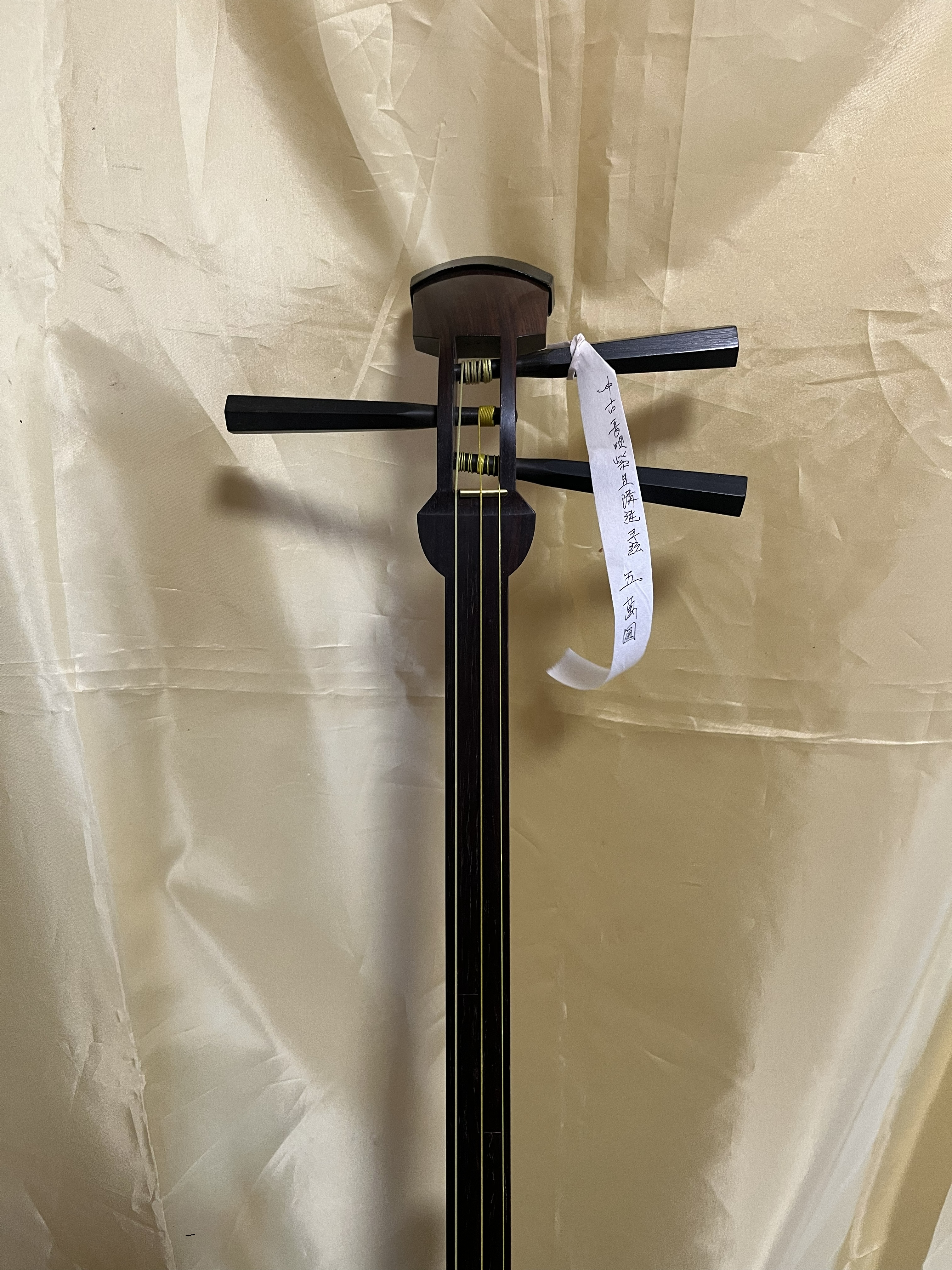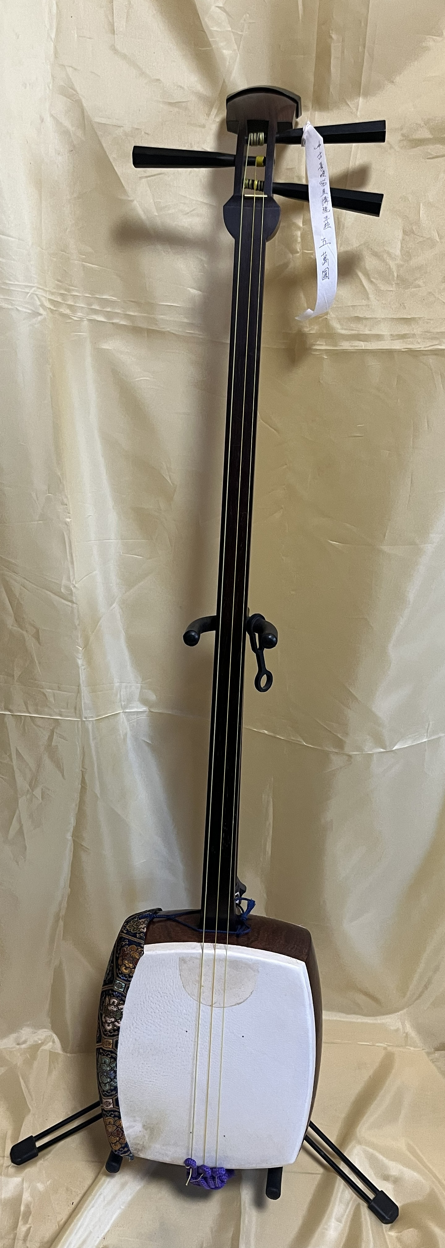 棹:紫檀材二つ折れ 胴:花梨材 皮:両犬 |